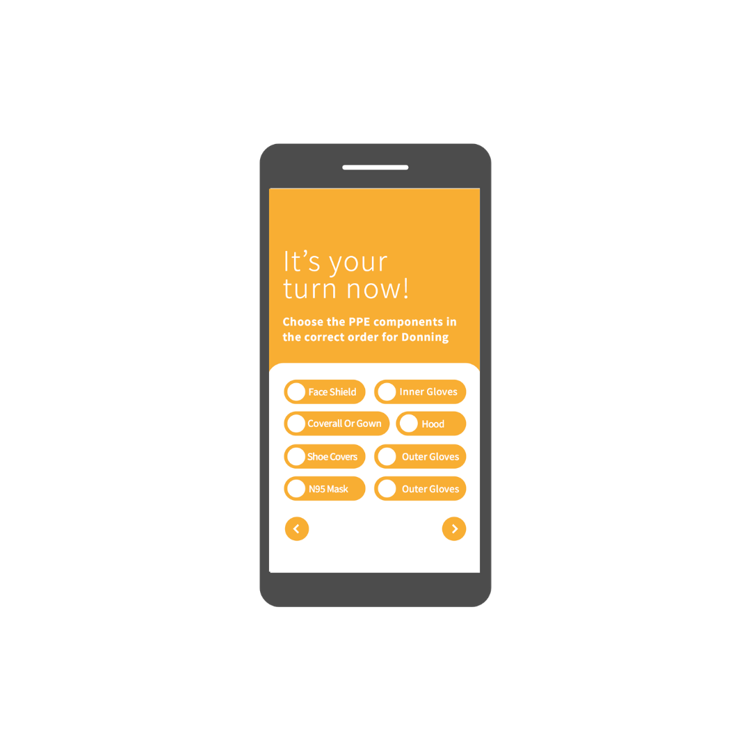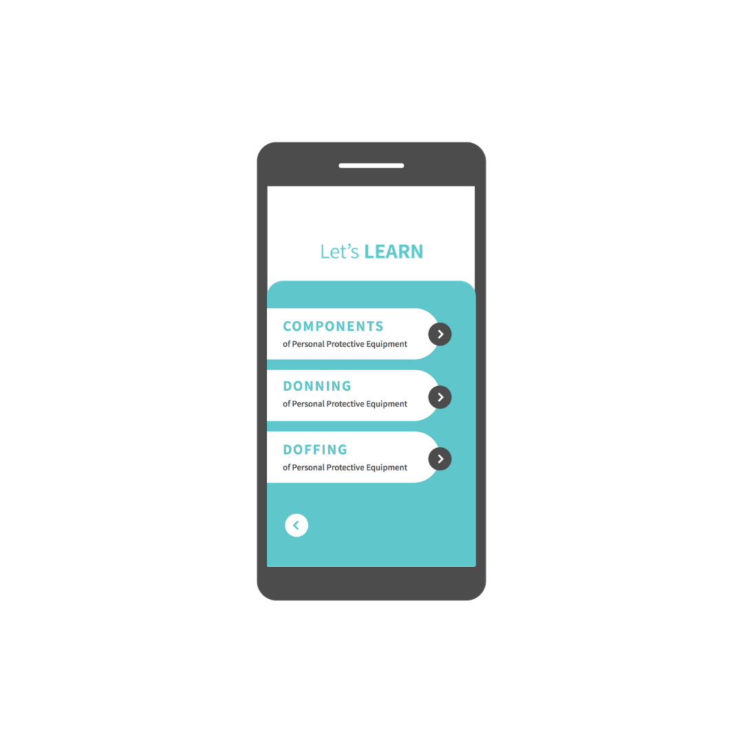 The app allows Noora Health’s nurses to learn about the PPE Components, how to don them, as well as how to effectively remove and discard them.