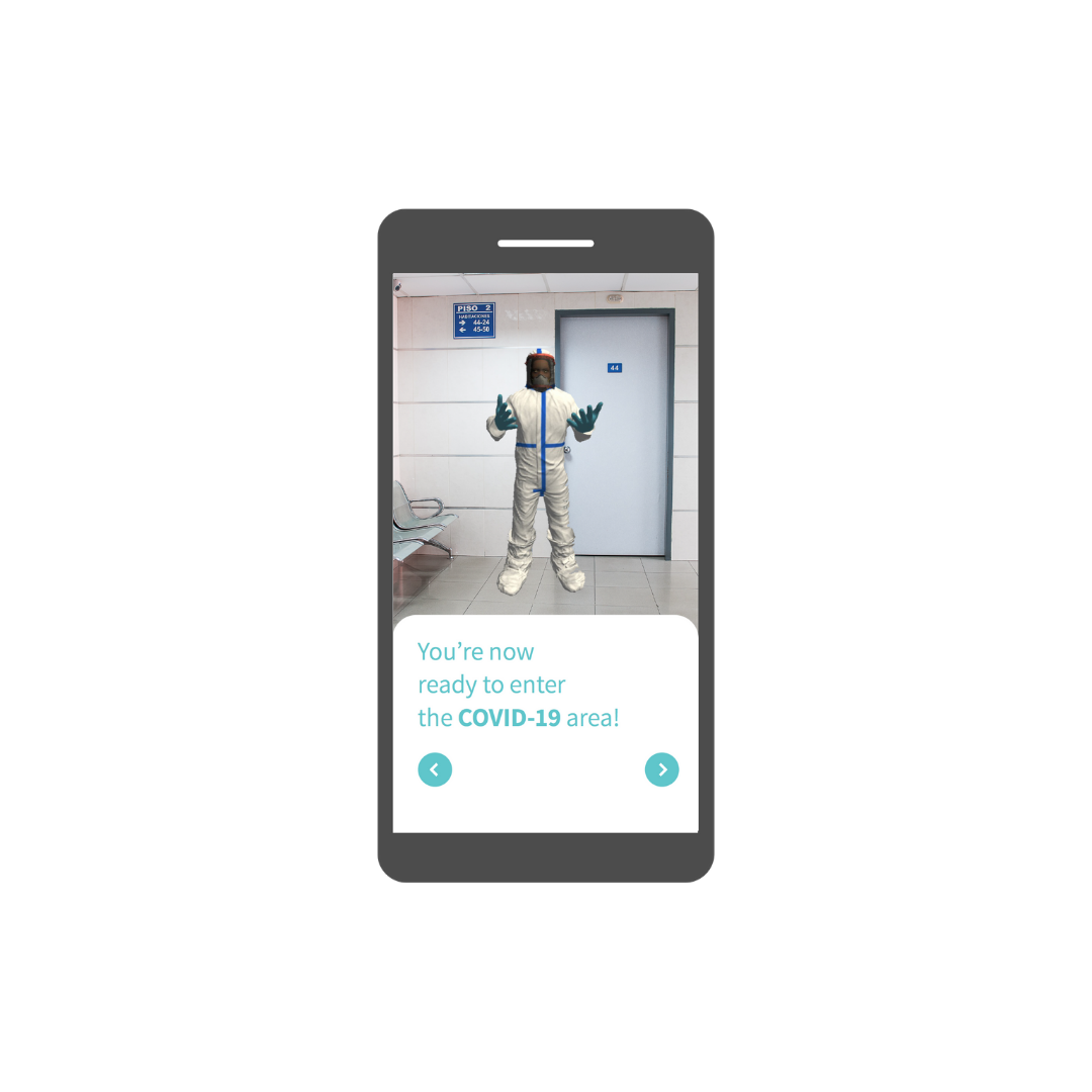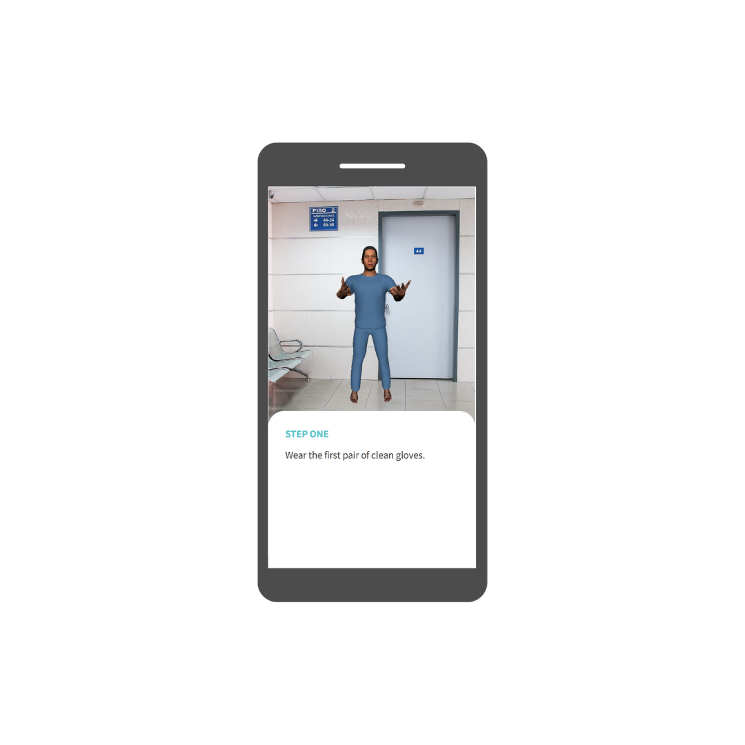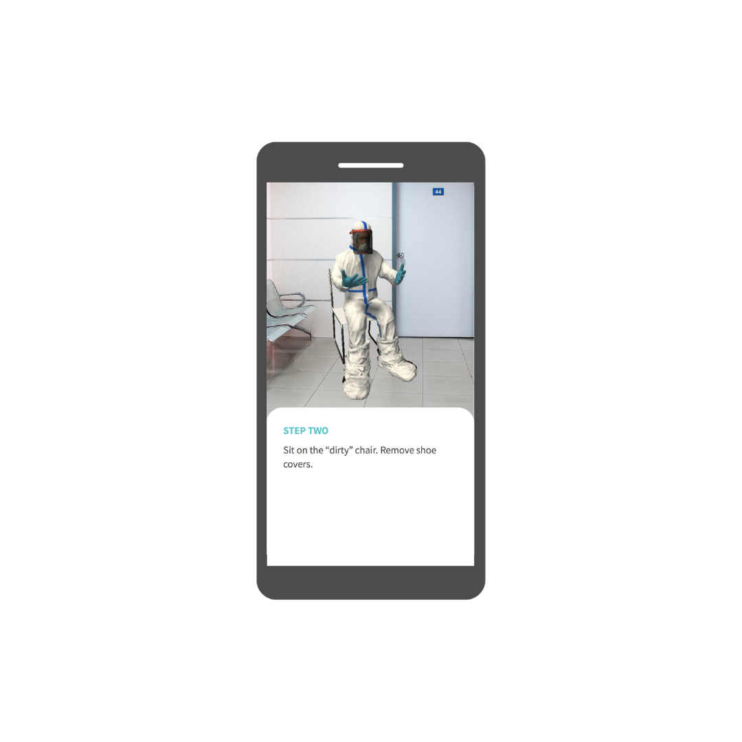 An audiovisual mobile experience using Augmented Reality that allows Noora Health’s nurses to view and learn about 3D PPE components and procedures that virtually appear in their physical space via their smartphones.